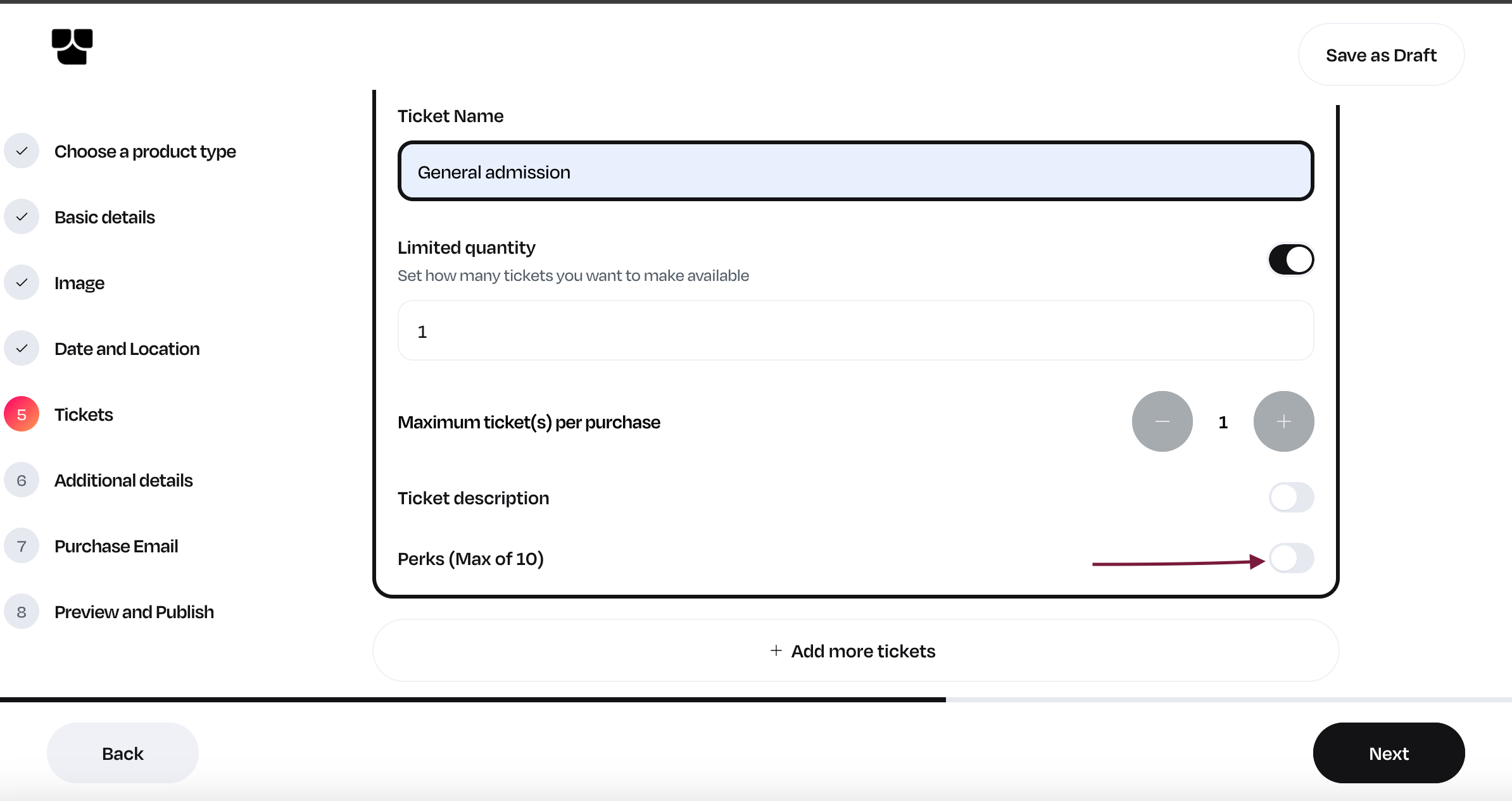 If you have an existing event ticket and you want to add or edit the perks on the ticket, simply follow these steps;