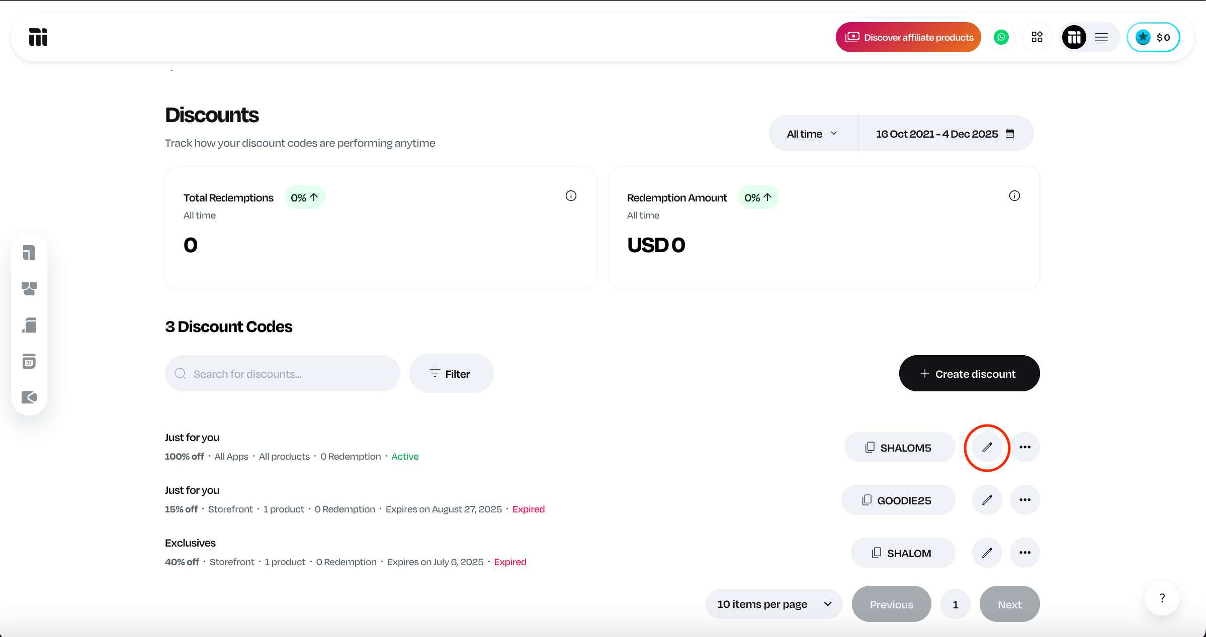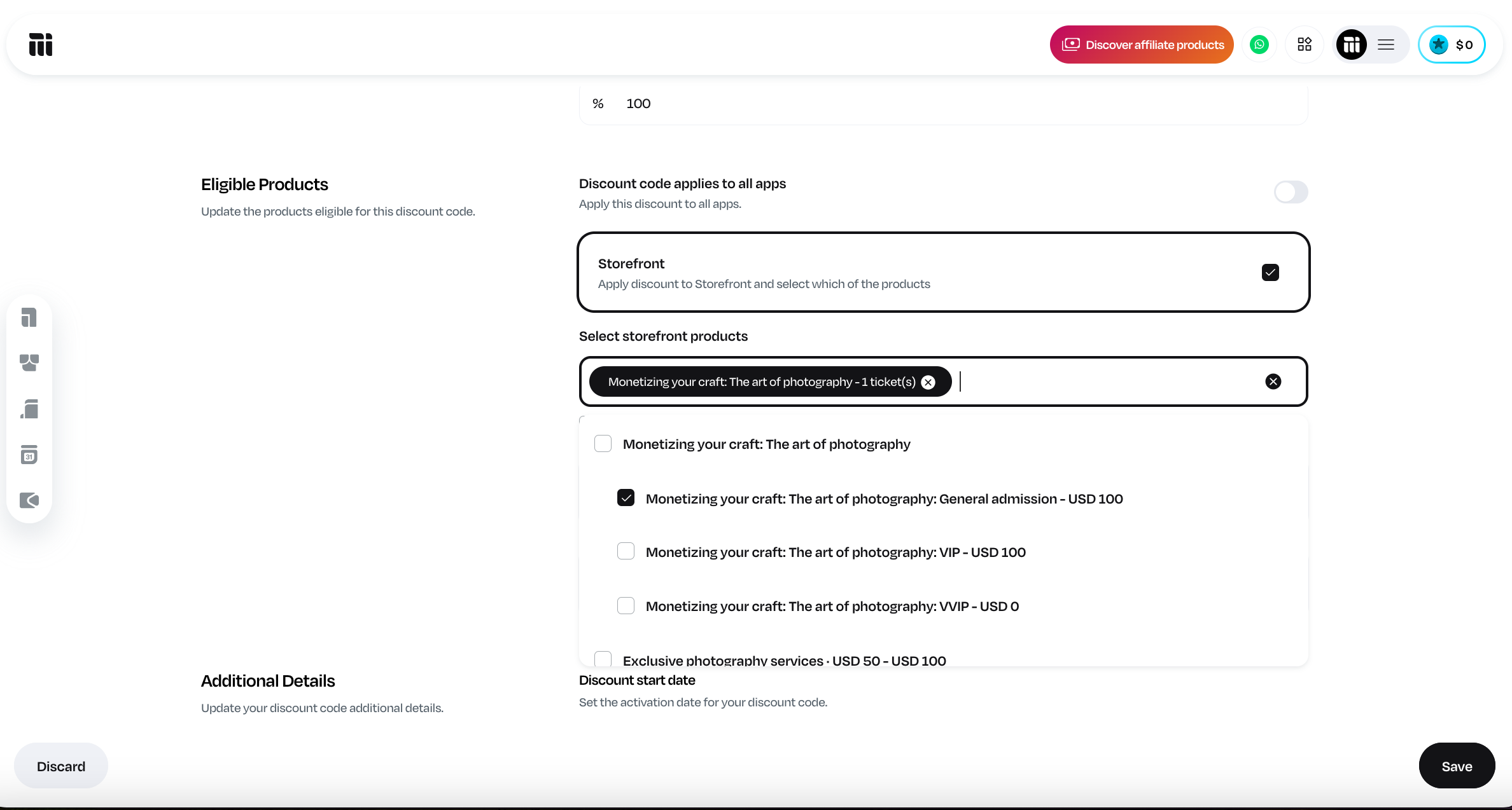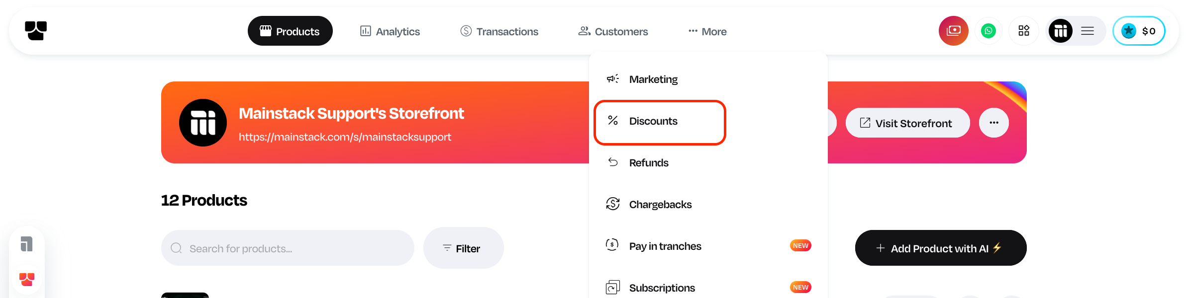 The Discount Feature enables you to create and manage discount codes that apply across all your Mainstack products: Storefront, Bookings, and Host Courses from a single, central dashboard. You can manage all your discounts from a single dashboard and ...