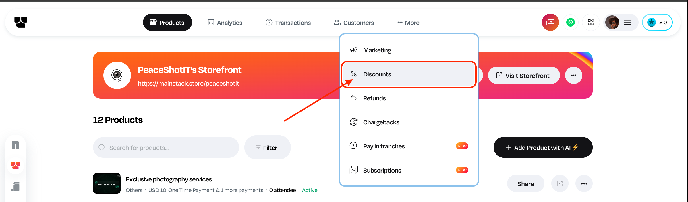 Here’s how to create a discount on your Storefront Dashboard;