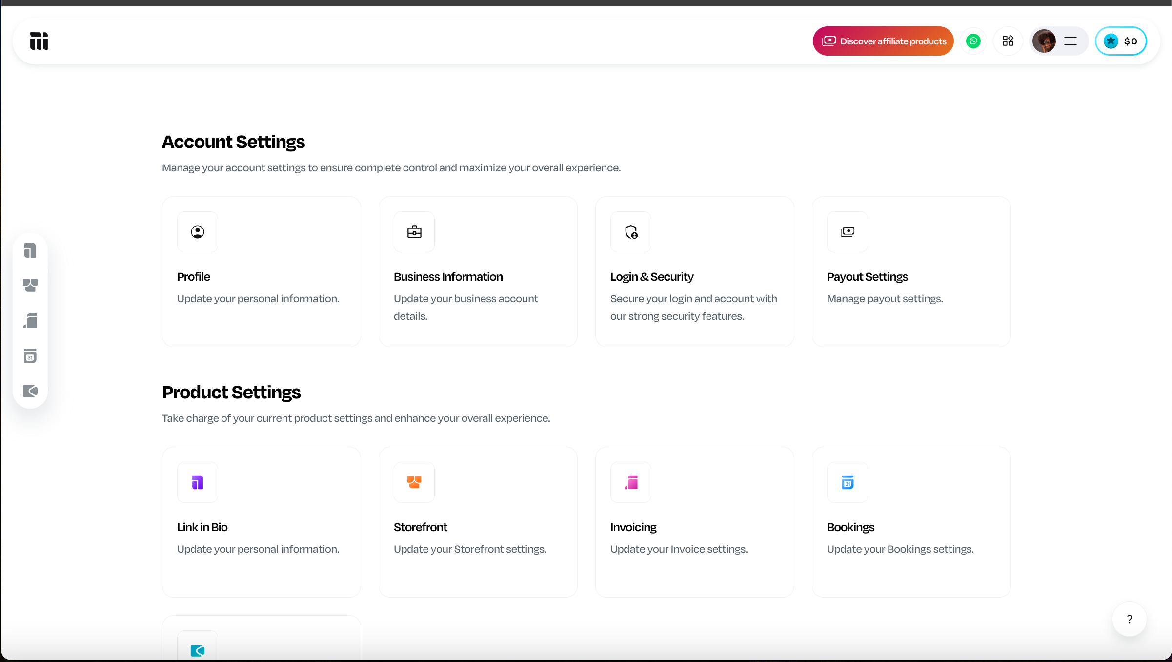 In the Account Settings page, scroll down to the product settings section.