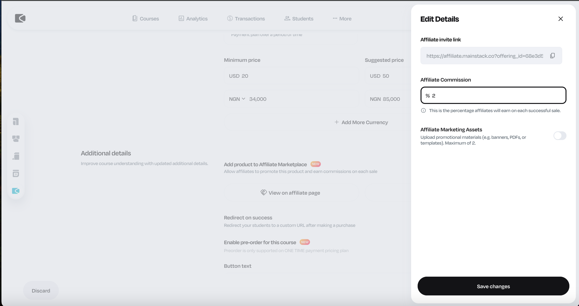 Now your course has been added to the Affiliate Marketplace.