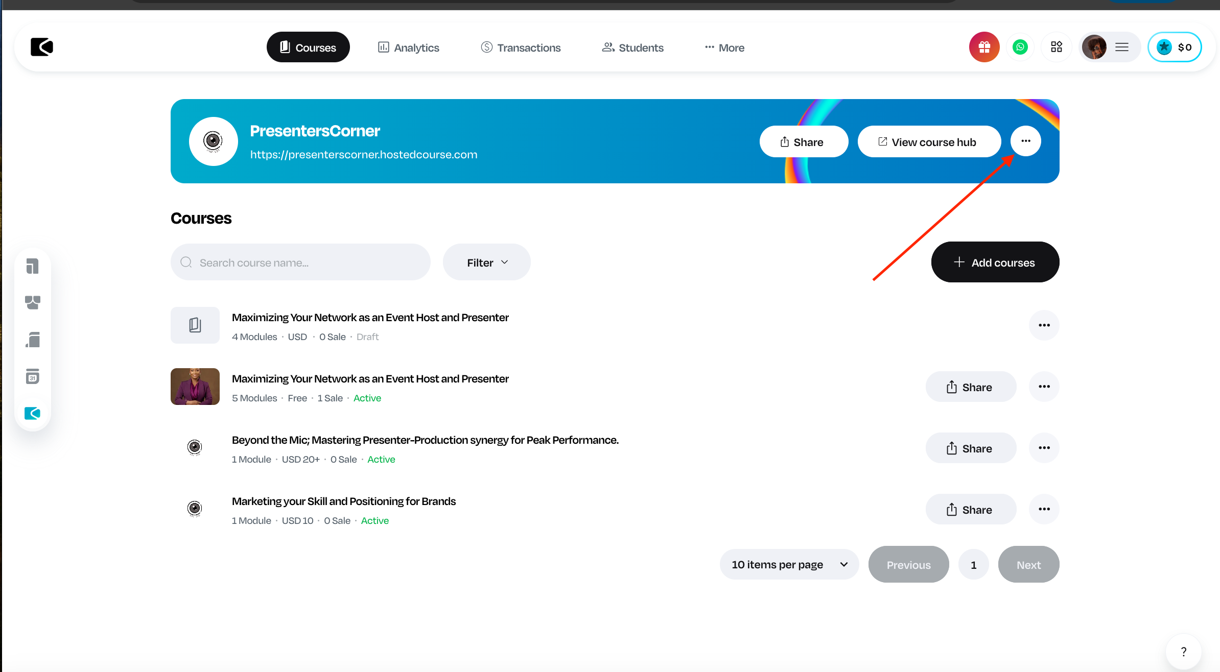 Here’s how to create a discount on your Hosted Courses Dashboard; Log in to your Mainstack Dashboard. On the Home page, click on Hosted Courses Click on More at the top right corner of the dashboard. Select Discounts Click on the “Create Discount” ...