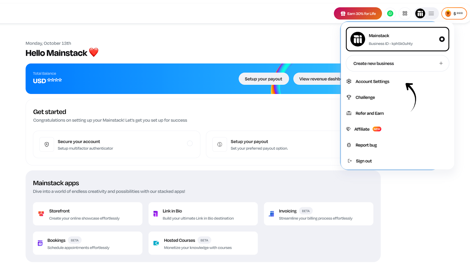 Quick simple guide on how to set up your payout method. Log in to your Mainstack Dashboard. Click on the hamburger menu (the 3 horizontal lines on the top right corner of your screen). Click on Account settings. Click on Payout Settings. There are ...