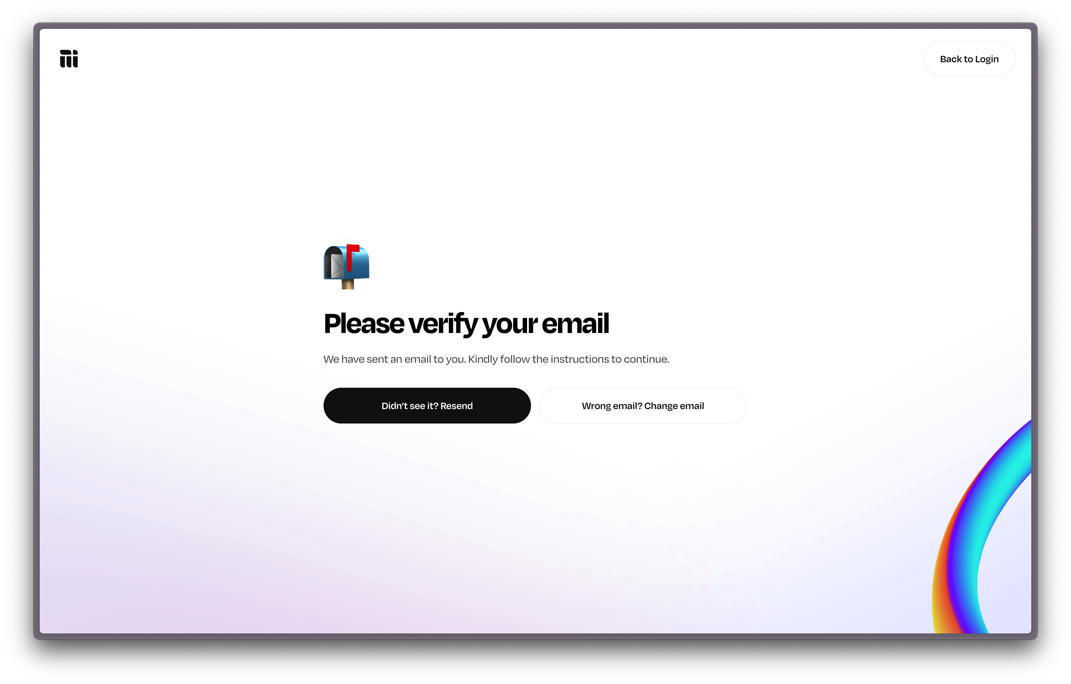 Go back to the “Please verify your email” screen.